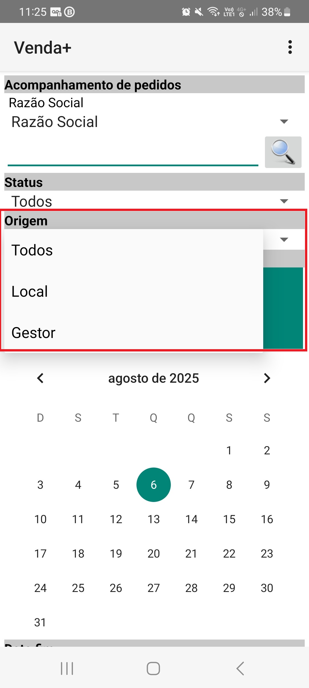 pedidos, é possível usar o filtro com pesquisa avançada da Razão social do