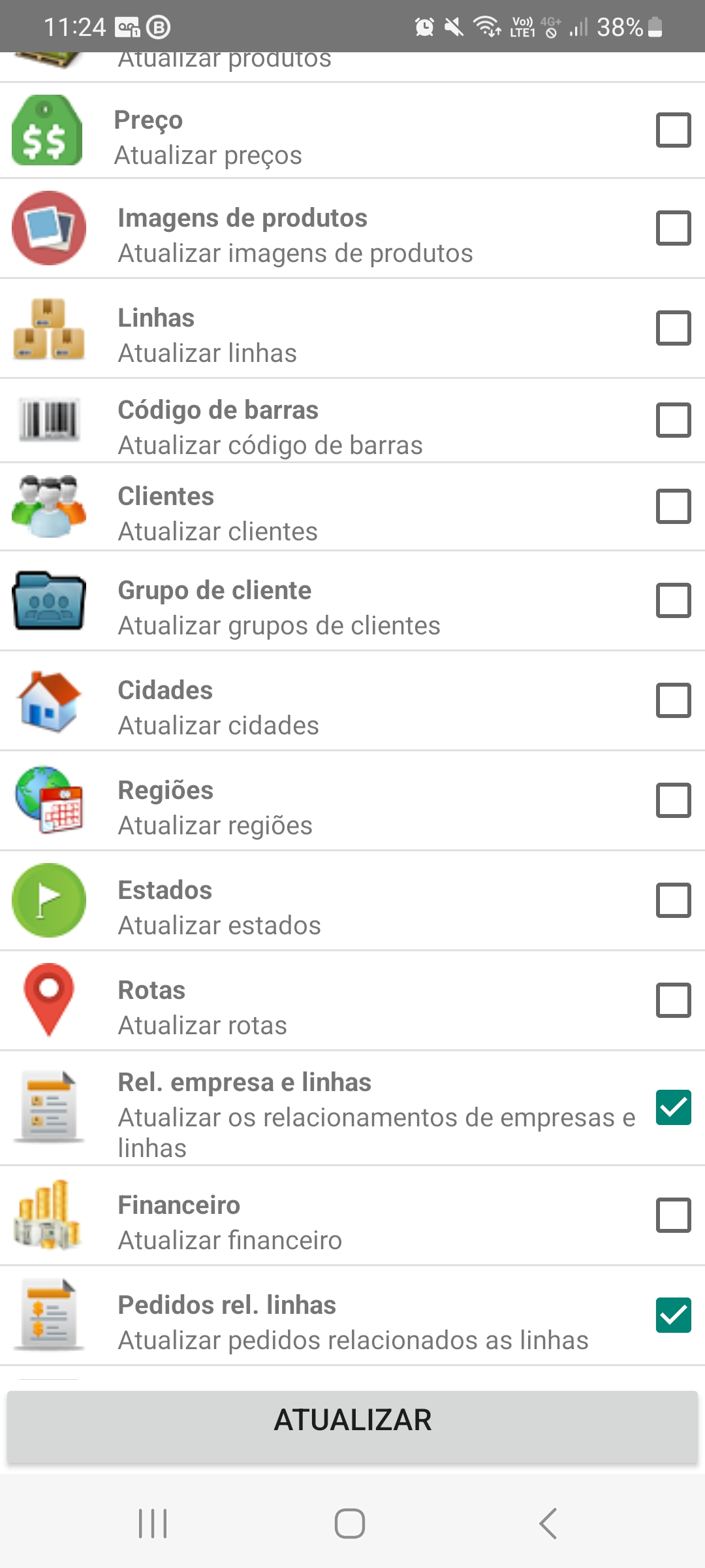 A atualização necessária para os pedidos são: ‘Pedidos rel. linhas’ e ‘Rel. empresa e linhas’.