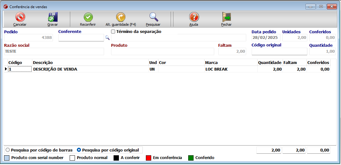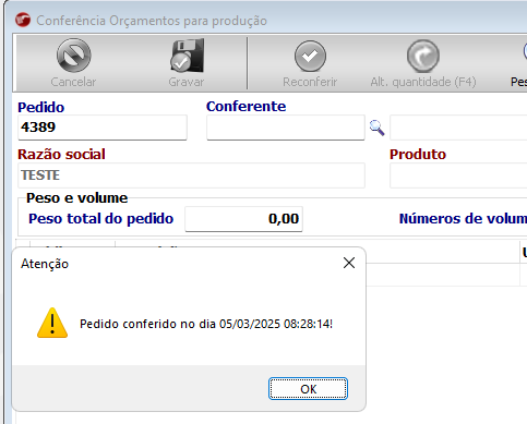 Usuário conferidor saberá a quantidade que foi comprada, não permitirá gravar com divergências.