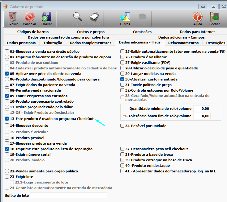 Antes de tudo, no cadastro do produto a flag '13 - Este produto é usado no programa CheckOut' em 'Dados adicionais - Flags' deve ser marcada.
