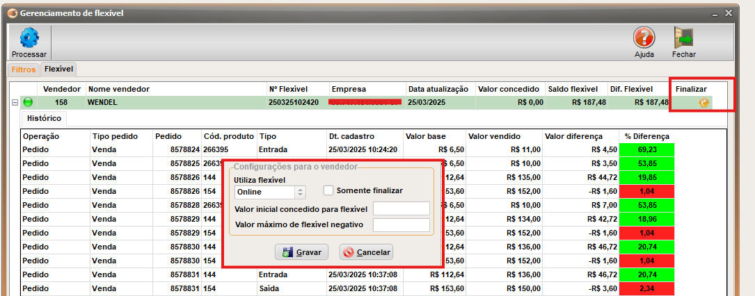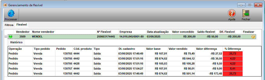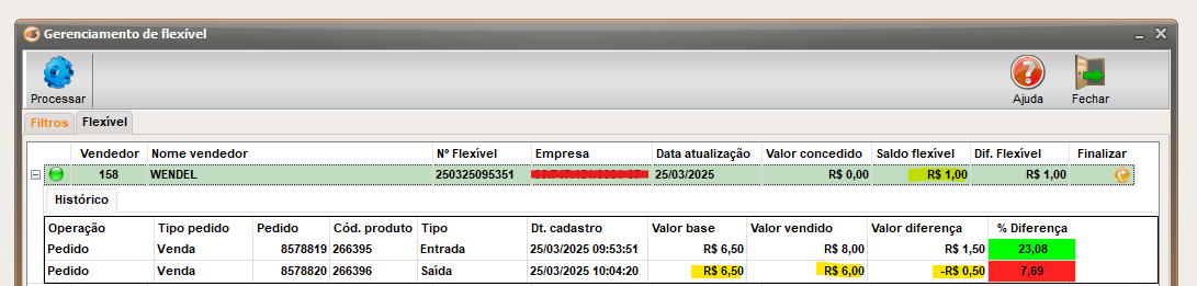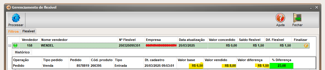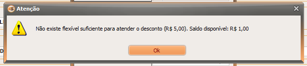 Caso o vendedor diminua o preço do produto e esse desconto, seja maior que o saldo do flexível, no fechamento da Venda será retornado o aviso que Não existe flexível suficiente para atender o desconto.