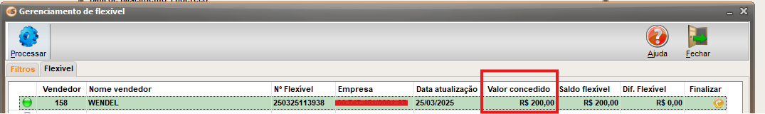 O valor máximo de flexível negativo pode ser definido por exemplo como 50,00 dessa forma se o saldo flexível for R$ 200,00 o vendedor pode aplicar até R$ 249,99 de desconto em vendas. Ou seja, usaria o saldo disponível e permitiria negativar esse valor de tolerância.