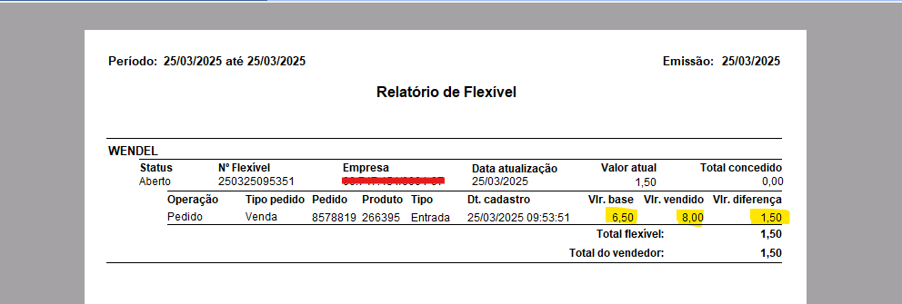 a venda, essa diferença também será considerada no saldo de flexível. De forma