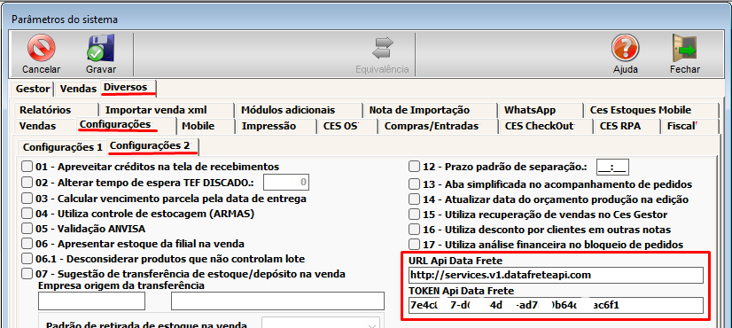 Esses dados serão inseridos nos PARÂMETROS do sistema, como exemplo: (Tela01)