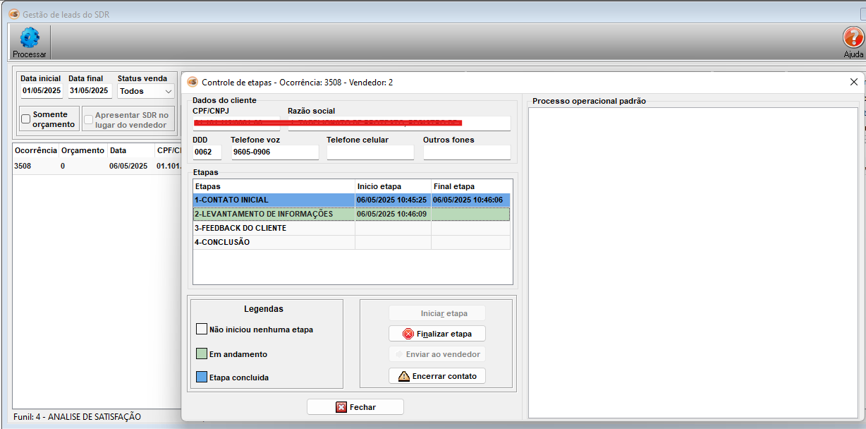 Em seguida, o SDR acessa a Gestão de Leads e inicia as etapas pré‑definidas no funil selecionado.