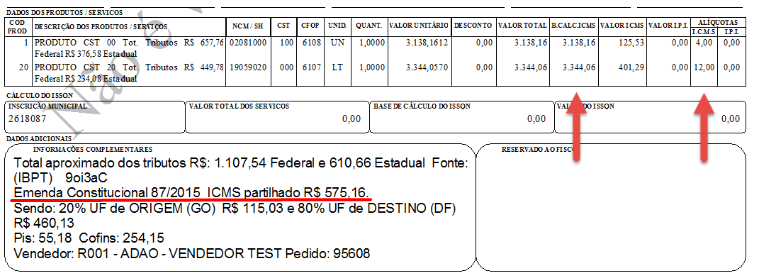 DIFAL = 1000 x (0,18 - 0,12) = R$ 60,00