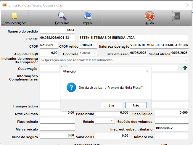 Tela: Vendas | Emissão de nota fiscal | Outras notas | Gerar outras notas