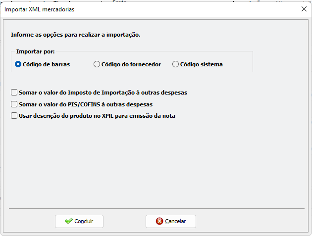 💡 Essas opções são úteis para refletir corretamente os custos e dados descritivos dos itens importados na nota de entrada.