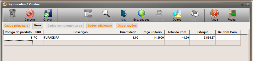 desmembramento dos impostos no rodapé da tela de venda, é preciso marcar o