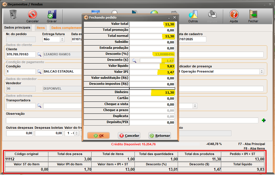 Vendas | Pré-venda | Calcular IPI inversamente (Marcado)