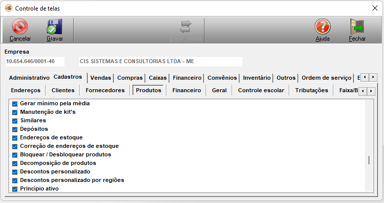 • Endereço de estoques por empresa (Marcar quando se utilizar endereço por empresa)