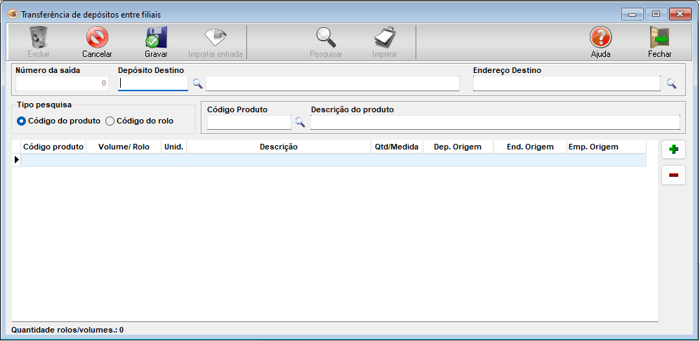 Selecione o depósito destino e em seguida o endereço destino, após isso clique no botão 'Importar entrada' e selecione a nota de entrada