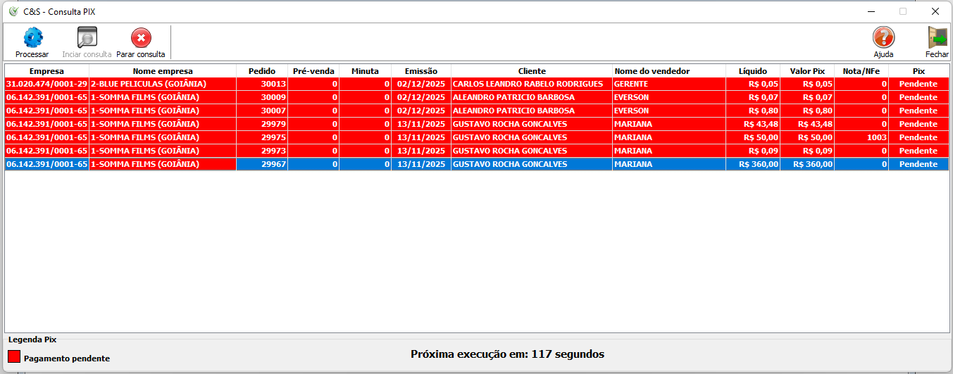 - Apresenta exclusivamente as vendas com status PIX Pendente.