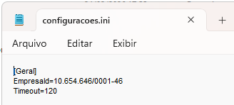 3. Ao abri-lo a primeira configuração deve ser feita (figura 4), para que o arquivo 'configuracoes.ini' seja criado (figura 5) com as configurações da base: