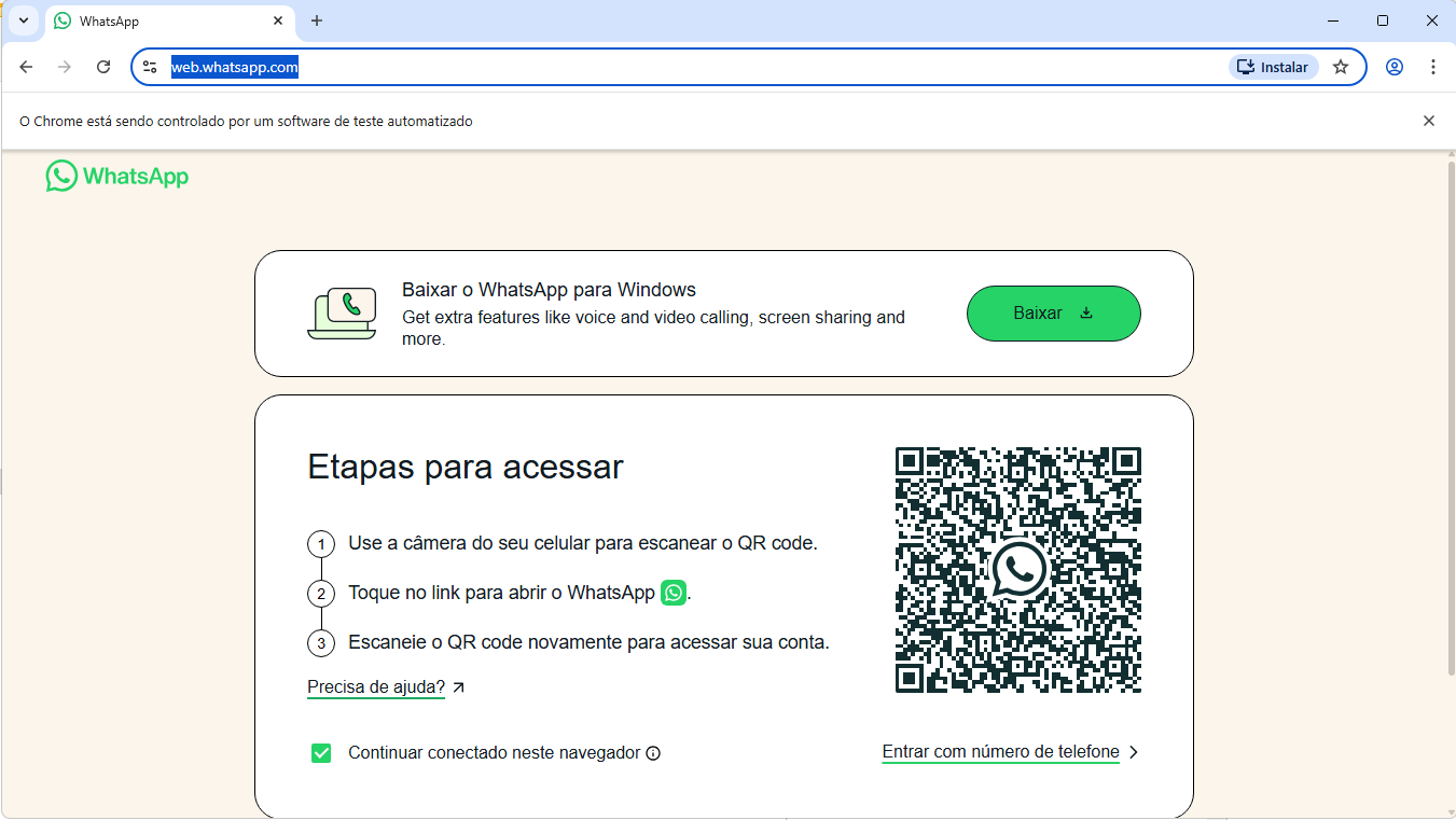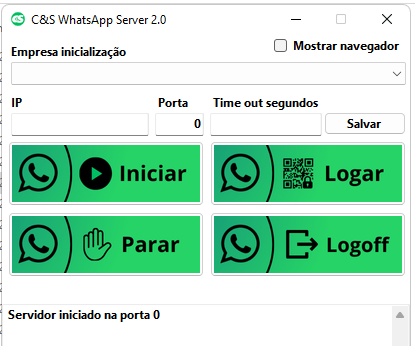 5.1 Na área de log aparecerá 'WhatsApp em execução!'