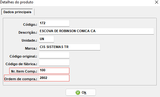 - Antes de clicar no botão "Ok" preencha o campo "Ordem de compra.:" conforme sua necessidade;