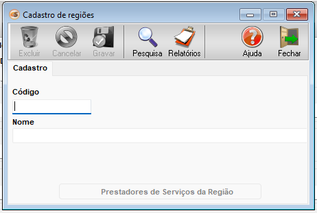 Clique no menu (Cadastros | Endereços | Regiões) será exibida uma tela semelhante a esta: