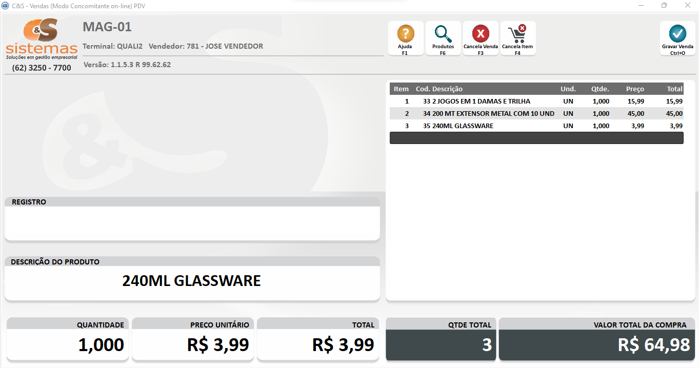 a partir do botão ‘Gravar Venda (Ctrl+O)’ e leva até a tela ‘Gravando