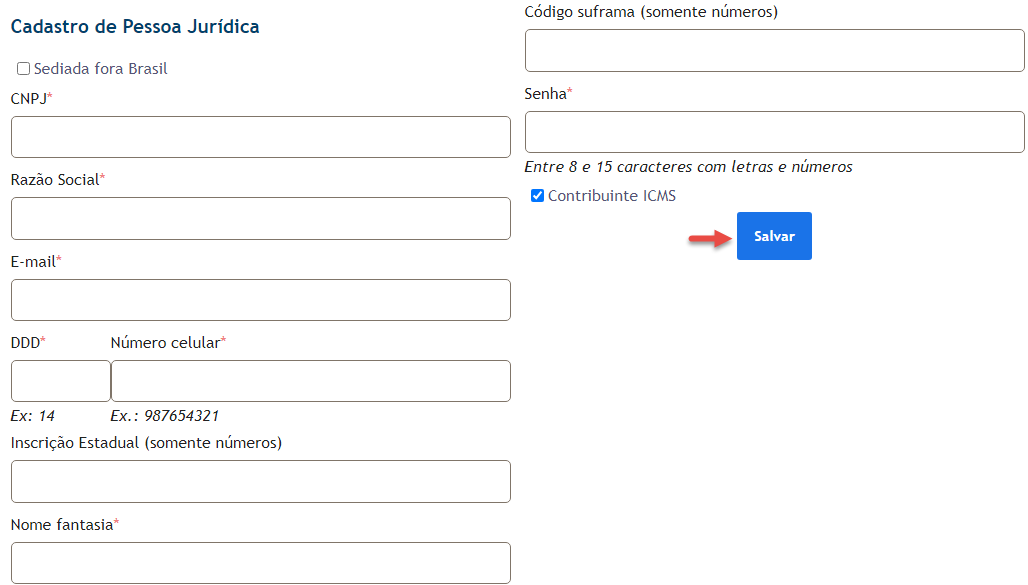 Após concluir o preenchimento, clique no botão 'Salvar'.