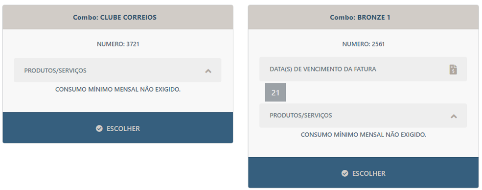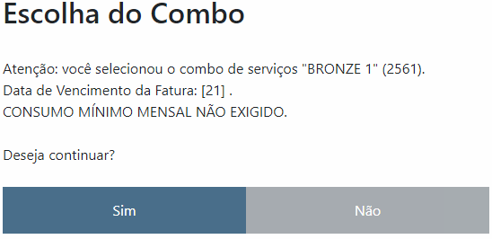 - Ao selecionar o combo de serviços, você verá as opções de combos disponíveis. Escolha o combo que melhor atenda as suas necessidades, como indicado na imagem a seguir: