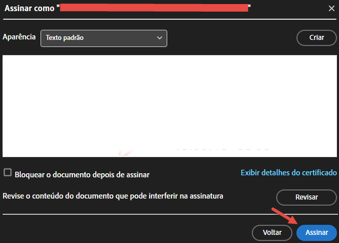 Agora, a janela de revisão será exibida. Basta clicar no botão 'Assinar', conforme ilustrado na imagem abaixo: