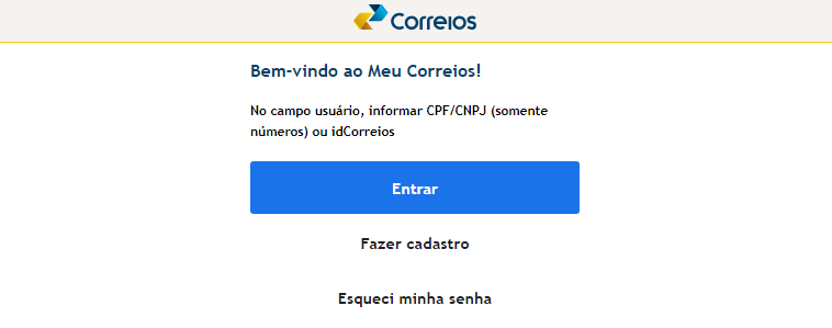 1) Preencha o campo 'Usuário do portal meu correios' sendo o CNPJ sem as pontuações.