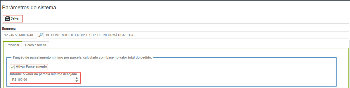 Por exemplo, se o valor mínimo por parcela for definido como R$ 100,00 e o pedido total for de