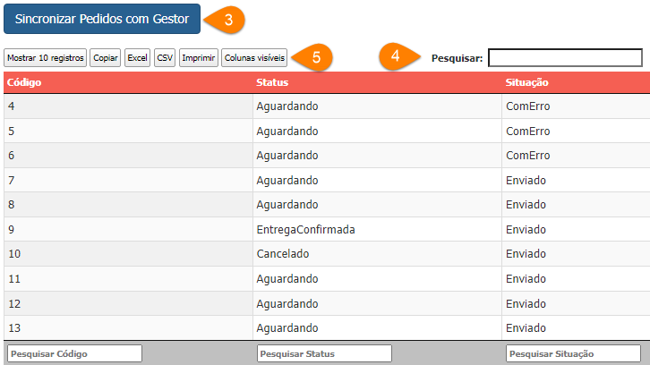 3. Para sincronizar os pedidos manualmente com o Gestor utilize esse botão;