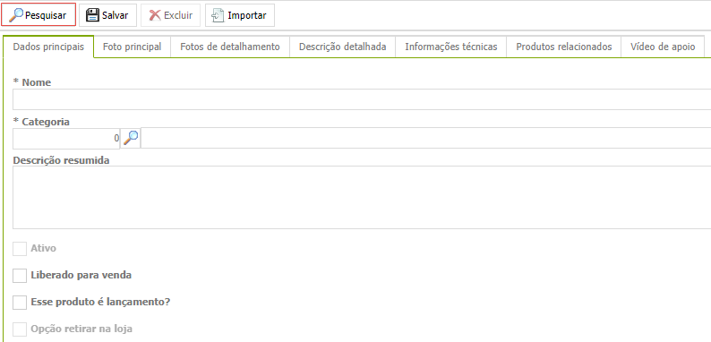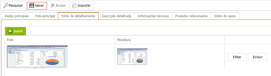 Para inserir ou editar a foto de detalhamento do produto siga os passos a seguir: