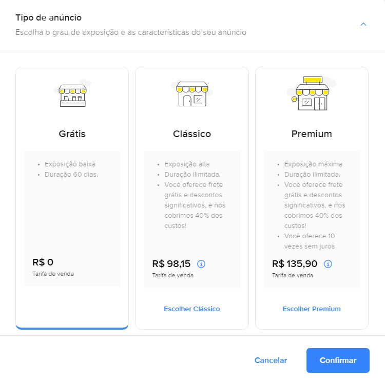 Para resolver essa questão, é preciso optar pelo tipo de anúncio Clássico ou Premium, permitindo a oferta de mais de uma unidade do produto.