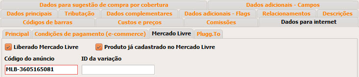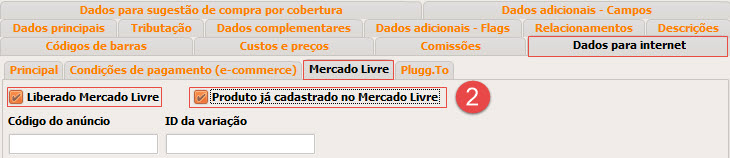 ⚠️ Importante: Certifique-se de que o produto tenha quantidade em estoque e preço definido. Caso contrário, ele não será enviado ao Mercado Livre.