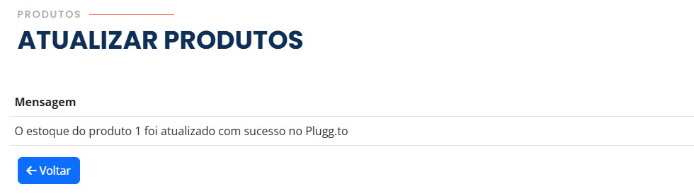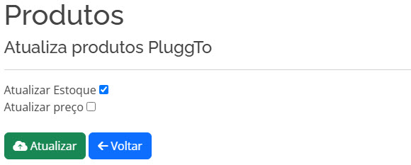 Marque a opção [x] Atualizar Estoque e, em seguida, clique no botão [Atualizar] para iniciar a sincronização.