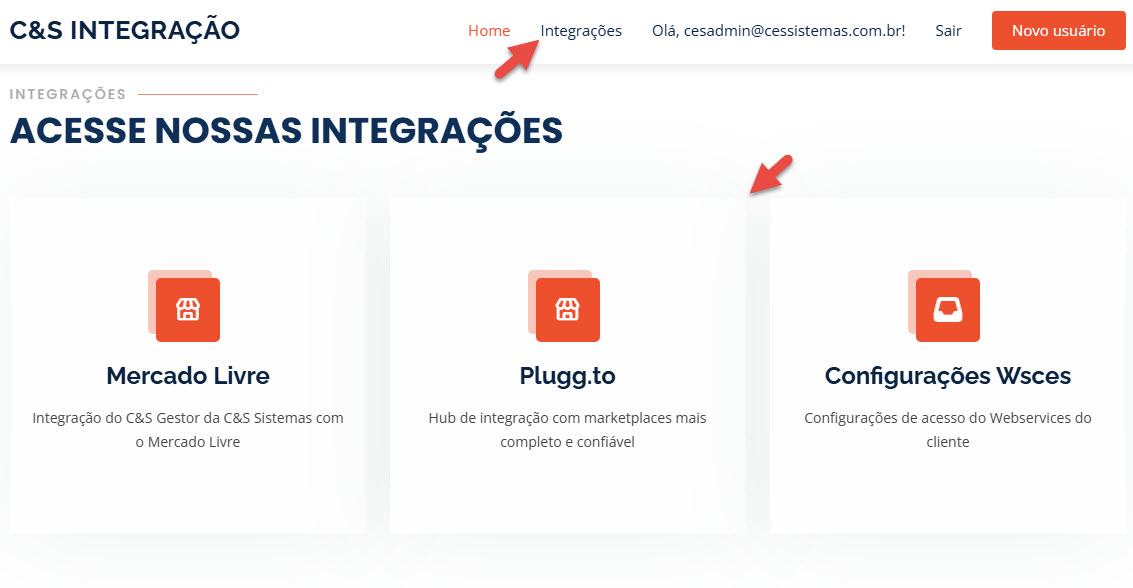 Após o login, acesse o menu 'Integrações' e selecione a opção Plugg.To.
