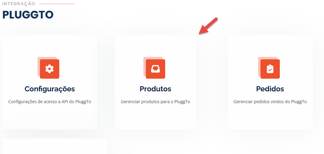 Dentre as opções selecione 'Produtos', conforme ilustra a imagem abaixo.