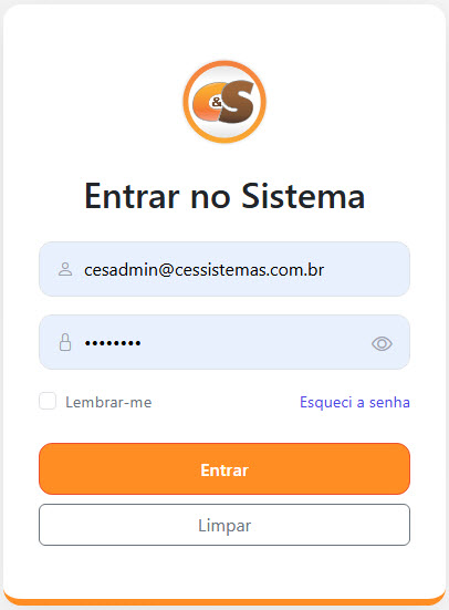 Acesse o sistema CES Integração utilizando a URL fornecida pelo nosso time de implantação ou suporte técnico.